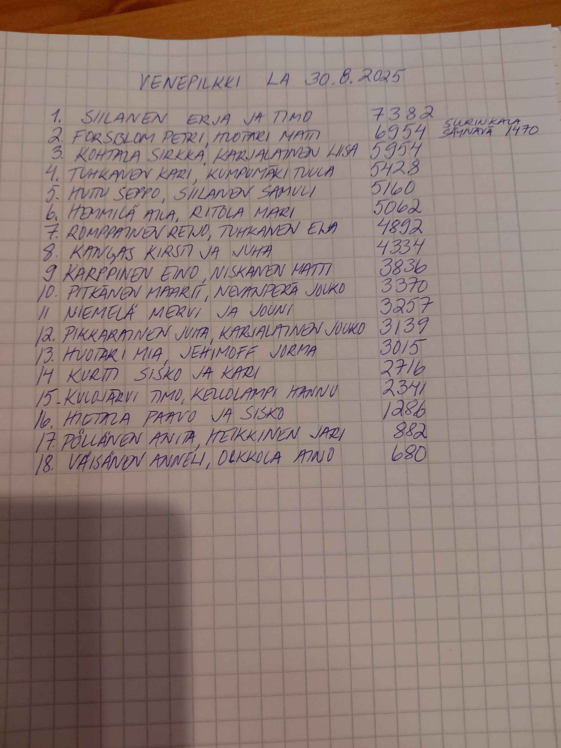 Puulaakipilkin suurimman kalan sai Kettumiehet 2, kala painoi 693 g.